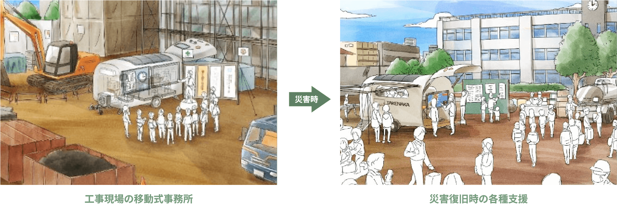 実際に、大阪・関西万博の工事期間中、能登半島で発生した地震の際には、被災後わずか1週間で、病院の復旧作業を担う工事担当者の臨時事務所として、急遽大阪から派遣され、約2ヶ月間にわたり活用されました。