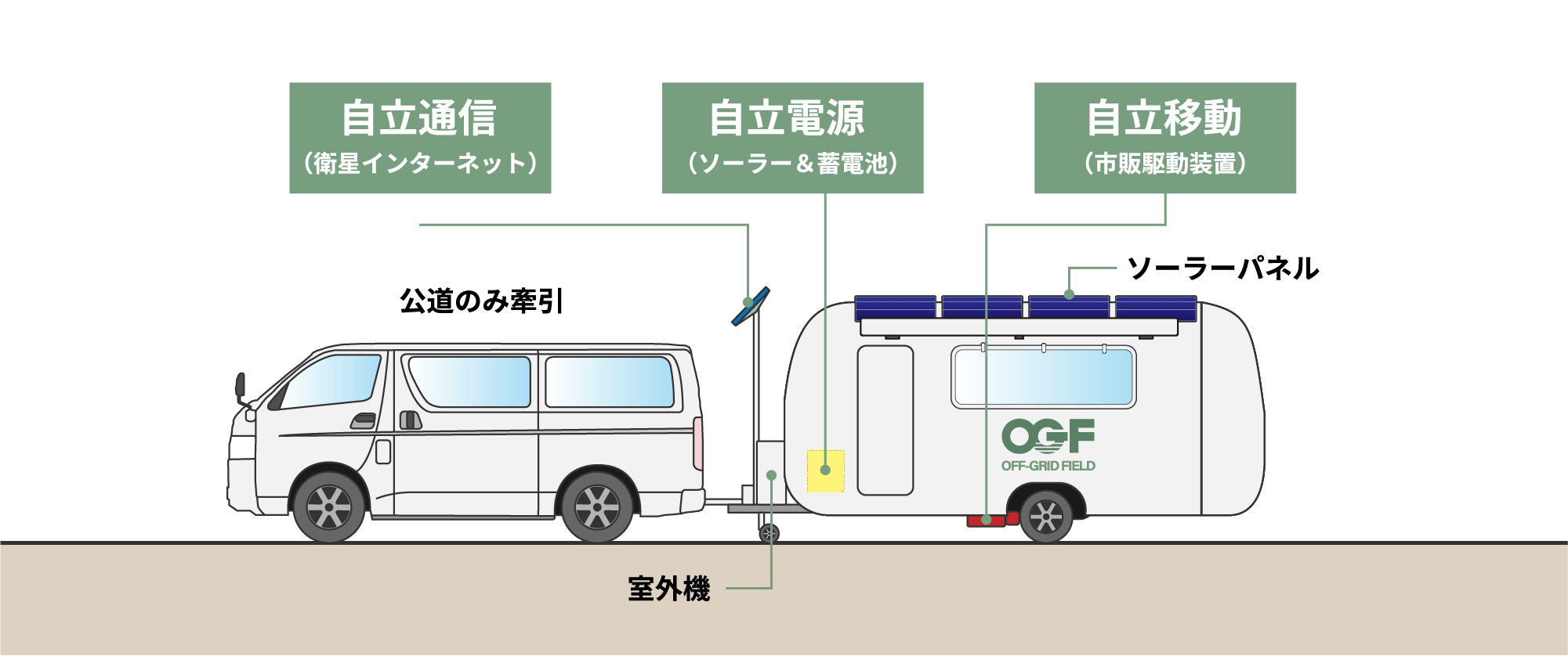 この課題に対する一つの有力なソリューションとして、私たちが提案するのが「移動式のオフグリッド型モバイルハウス」です。これは、従来の工事事務所と同等の機能を持ちながら、画期的な機動性を兼ね備えています。